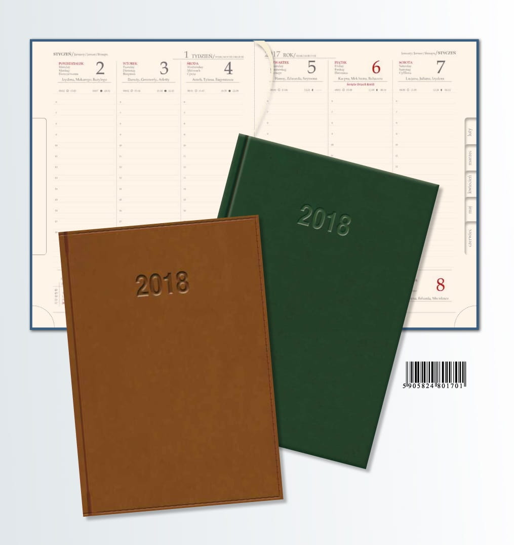 - Układ kalendarium: 1 tydzień - 2 strony