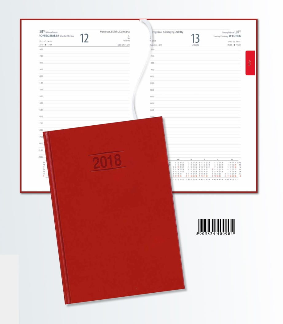 - Układ kalendarium: 1 dzień - 1 strona (sobota i niedziela na wspólnej stronie)