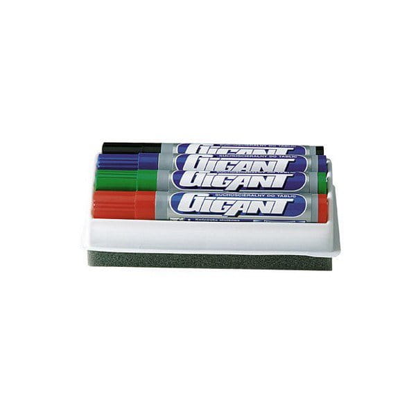 Komplet markerów do tablic suchościeralnych Kamet 4 sztuki + gąbka w zestawie ułatwiająca pracę.