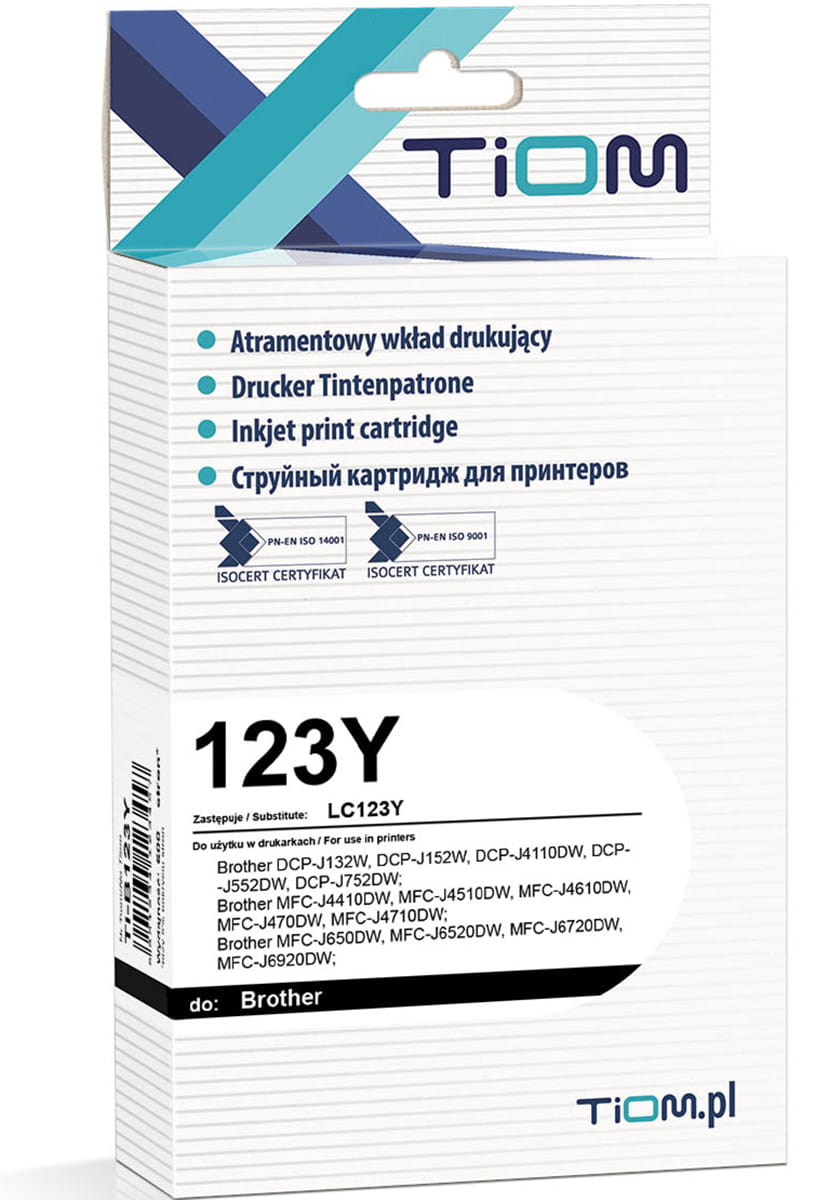 - Nazwa Zamiennika: TiOM Yellow (Żółty) Wkład LC123Y