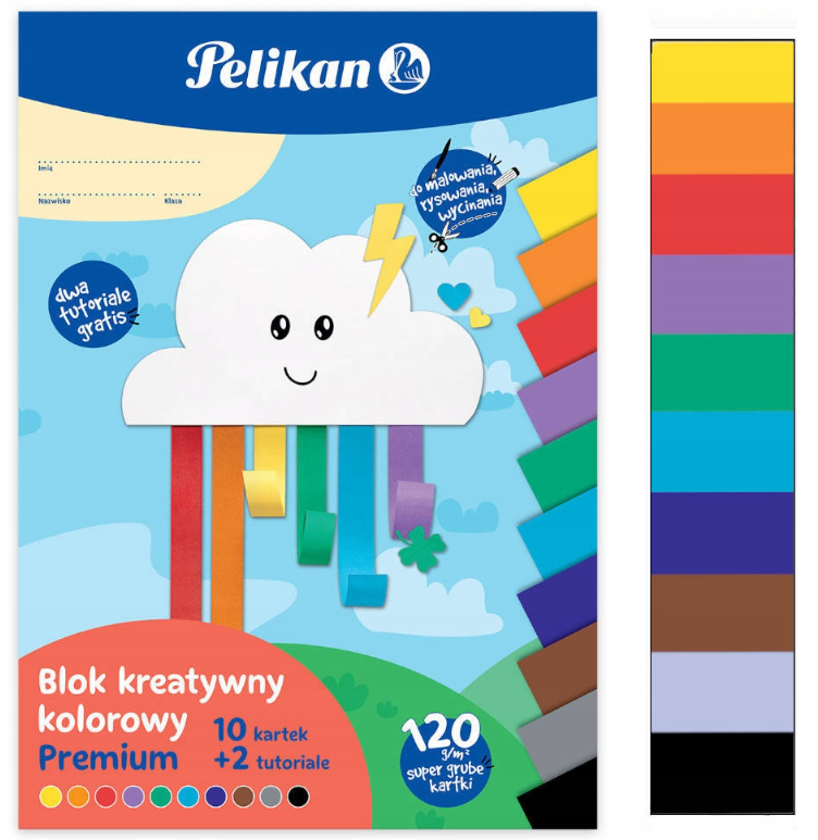 Kolorowy blok kreatywny idealny dla dzieci i młodych artystów. Zawiera wysokiej jakości, grube arkusze w różnych barwach, doskonałe do rysowania, wycinania i innych projektów plastycznych.