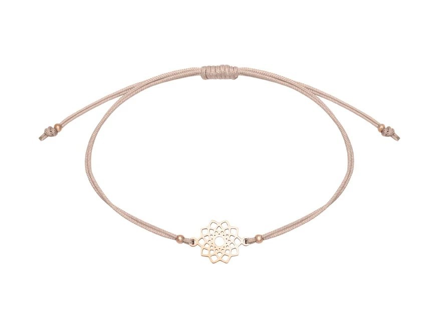 Lekki, tekstylny sznurek z regulacją na przesuwne supełki pozwala łatwo dopasować rozmiar do każdego nadgarstka. Bransoletka jest wygodna, komfortowa i idealna do codziennego noszenia.