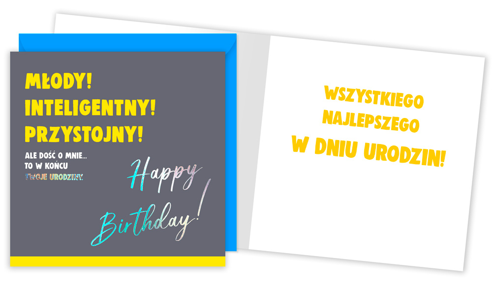 Wewnątrz znajduje się krótkie hasło z życzeniami oraz miejsce na własną dedykację, dzięki czemu możesz nadać jej osobisty charakter. Całość została wzbogacona efektowną srebrną folią holograficzną, która dodaje połysku i podkreśla nowoczesny design. W zestawie znajduje się kontrastowa, neonowa koperta z logo Kukartka, idealnie dopasowana stylistycznie do kartki.