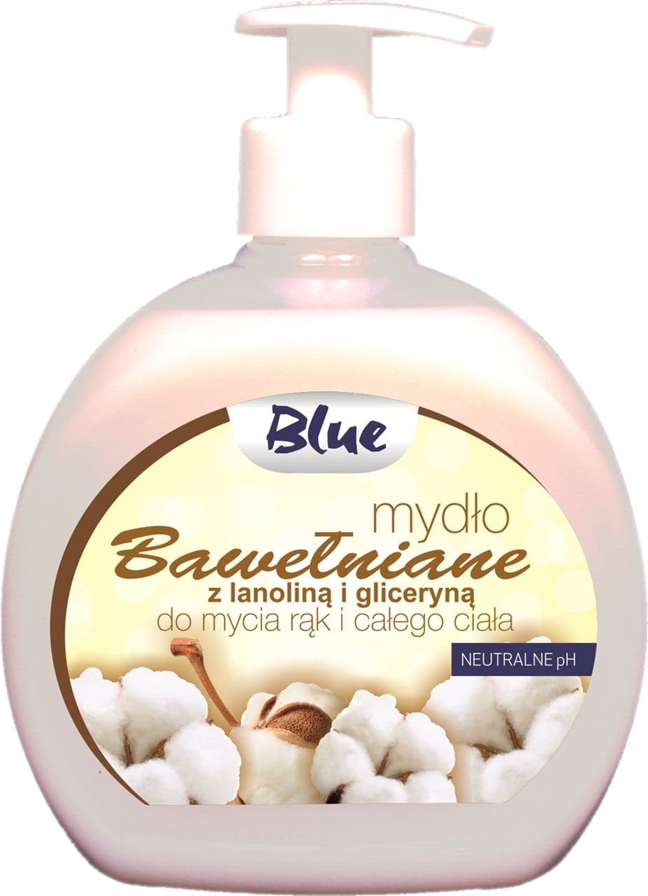 Mydło w płynie Blue 500 ML z dozownikiem zawierające glicerynę oraz lanolinę.
