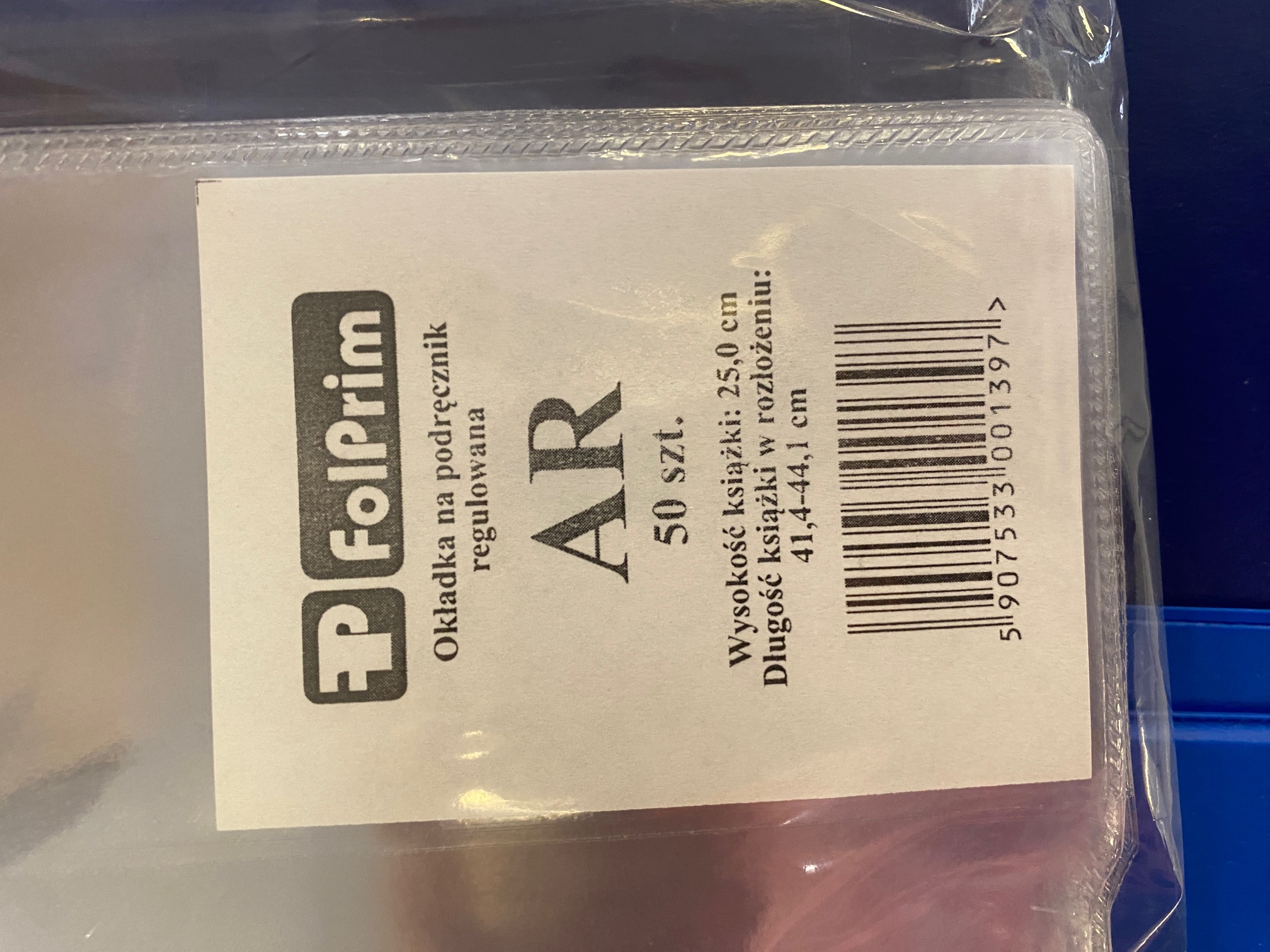 OKŁADKA NA PODRĘCZNIK REGULOWANA/FOLPRIM/ AR WYSOKOŚĆ: 25,0cm/DŁUGOŚĆ: 41,4-44,1cm