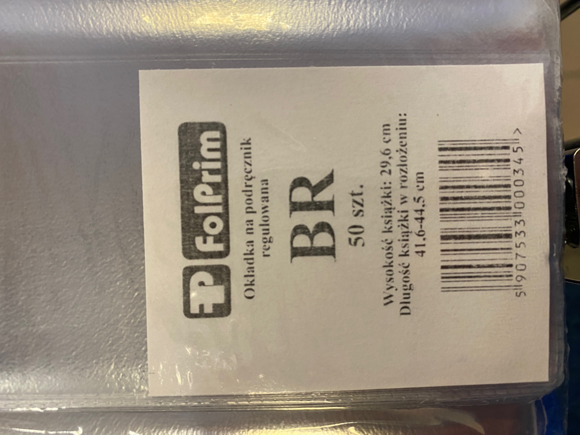 OKŁADKA NA PODRĘCZNIK REGULOWANA/FOLPRIM/ BR WYSOKOŚĆ : 29,6cm/DŁUGOŚĆ: 41,6 - 44,5cm