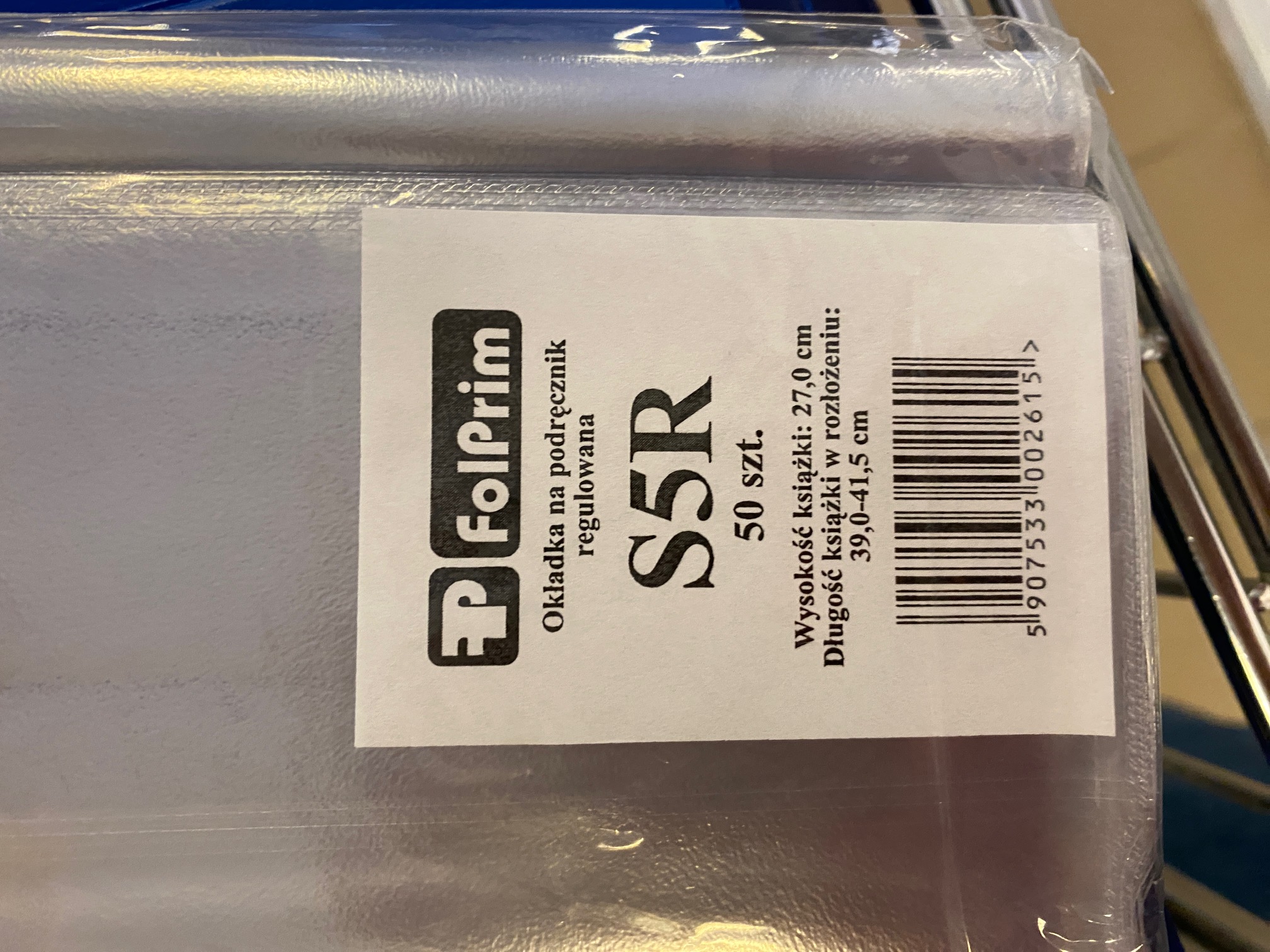 OKŁADKA NA PODRĘCZNIK REGULOWANA/FOLPRIM/ S5R WYSOKOŚĆ : 27,0 cm/ DŁUGOŚĆ: 39,0 - 41,5 cm