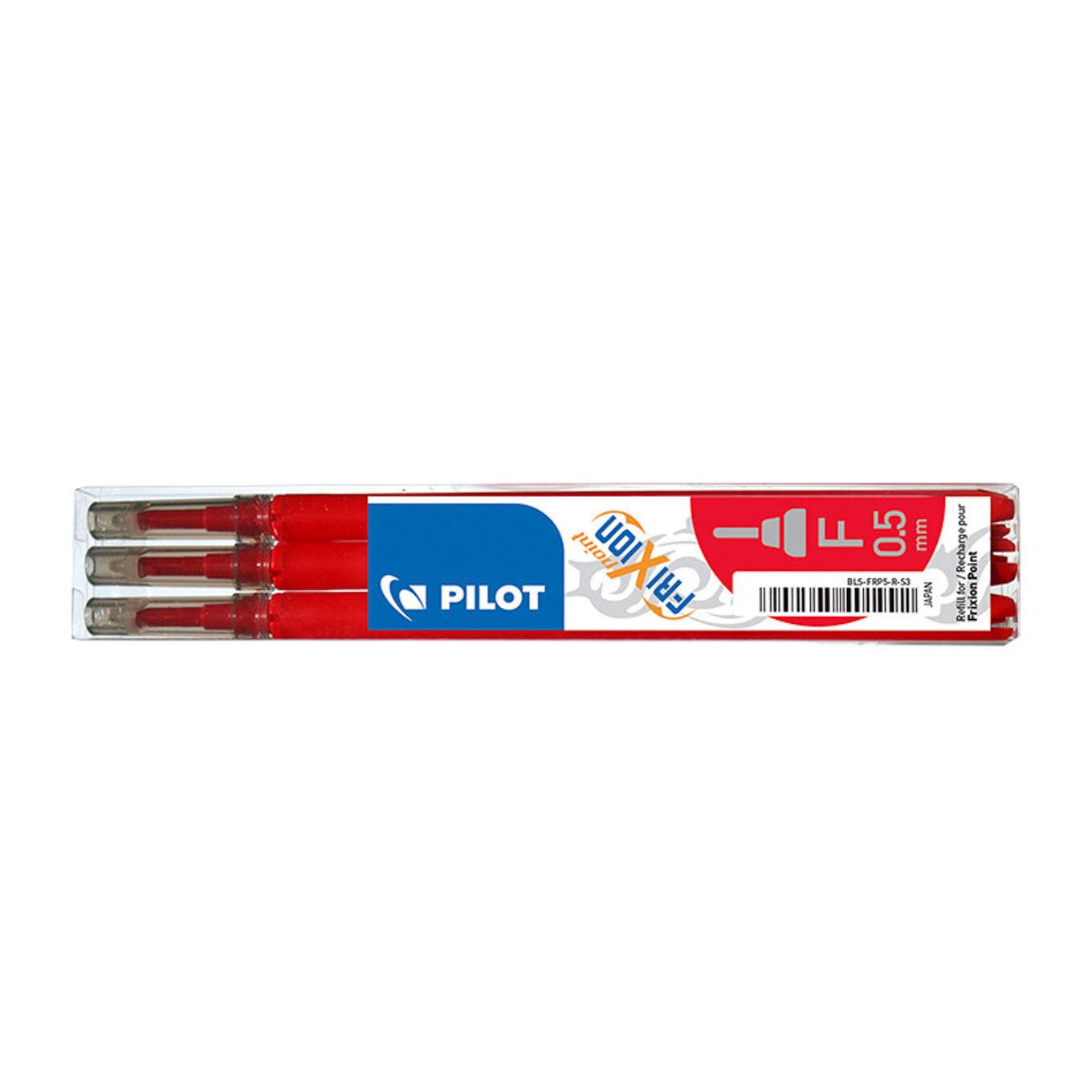 Zestaw trzech czerwonych wkładów, do wymazywalnego pióra kulkowego: Frixion Point oraz Frixion Poin Clicker.
